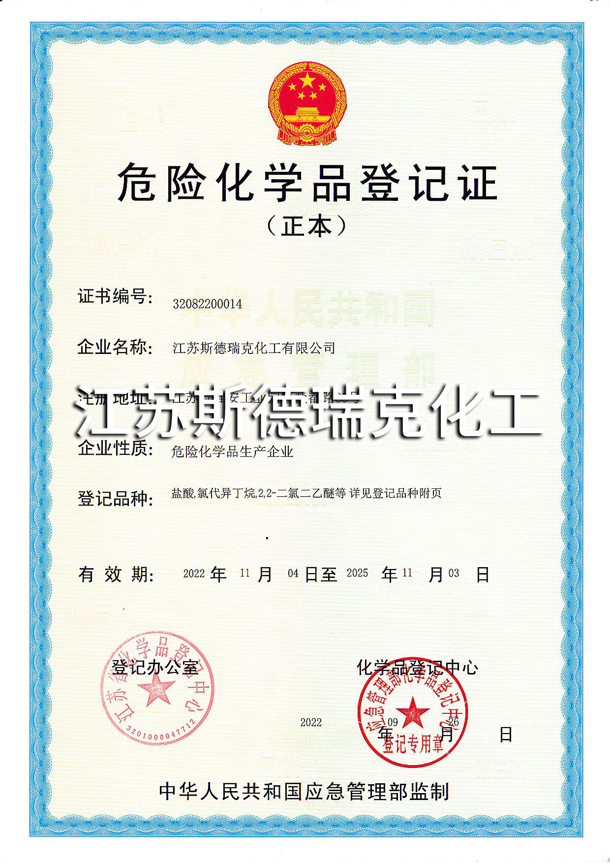 江蘇斯德瑞克化工有限公司成立于2002年,是一家集研發、生產和銷售一體化的“國家高新技術企業”。現有員工100多人,其中科技人員占20%以上;位于江蘇省淮安市鹽化工園,占地面積180畝,建筑面積達38000多平方米。